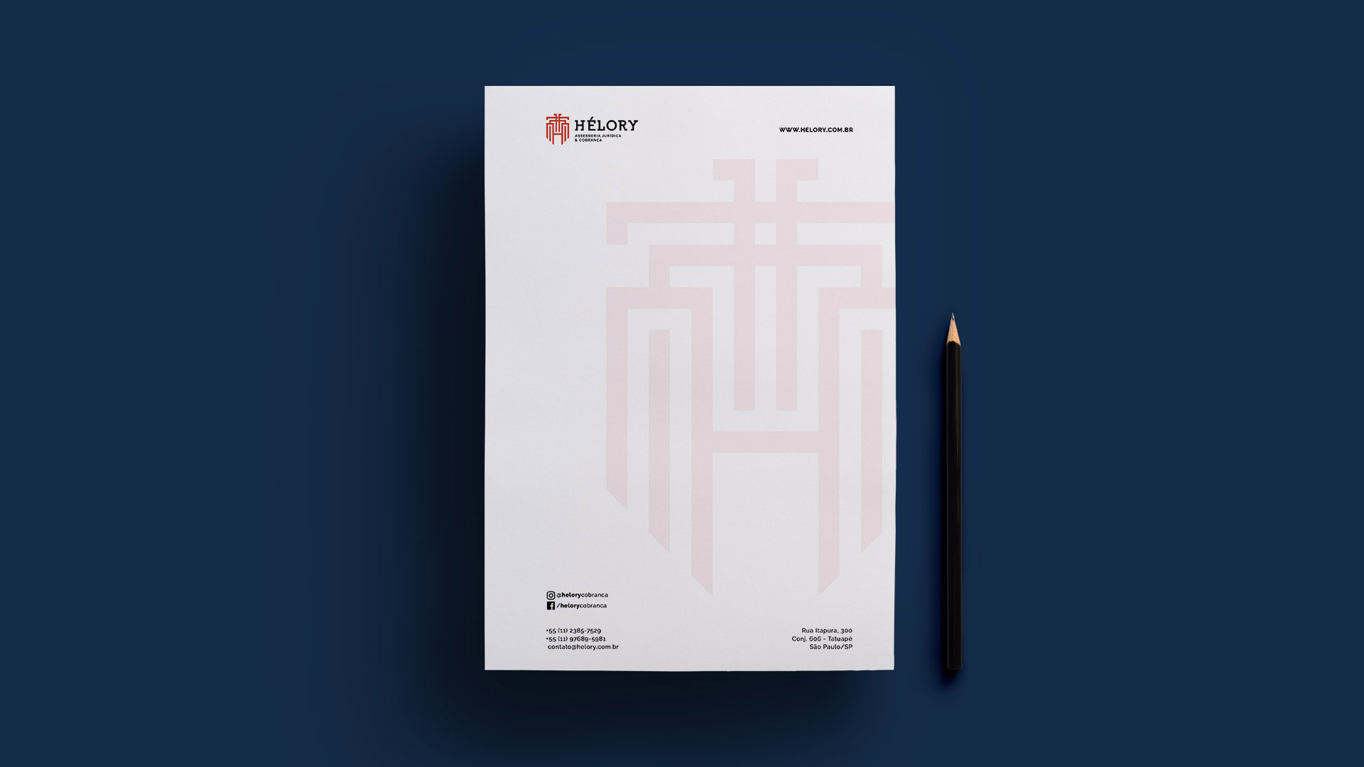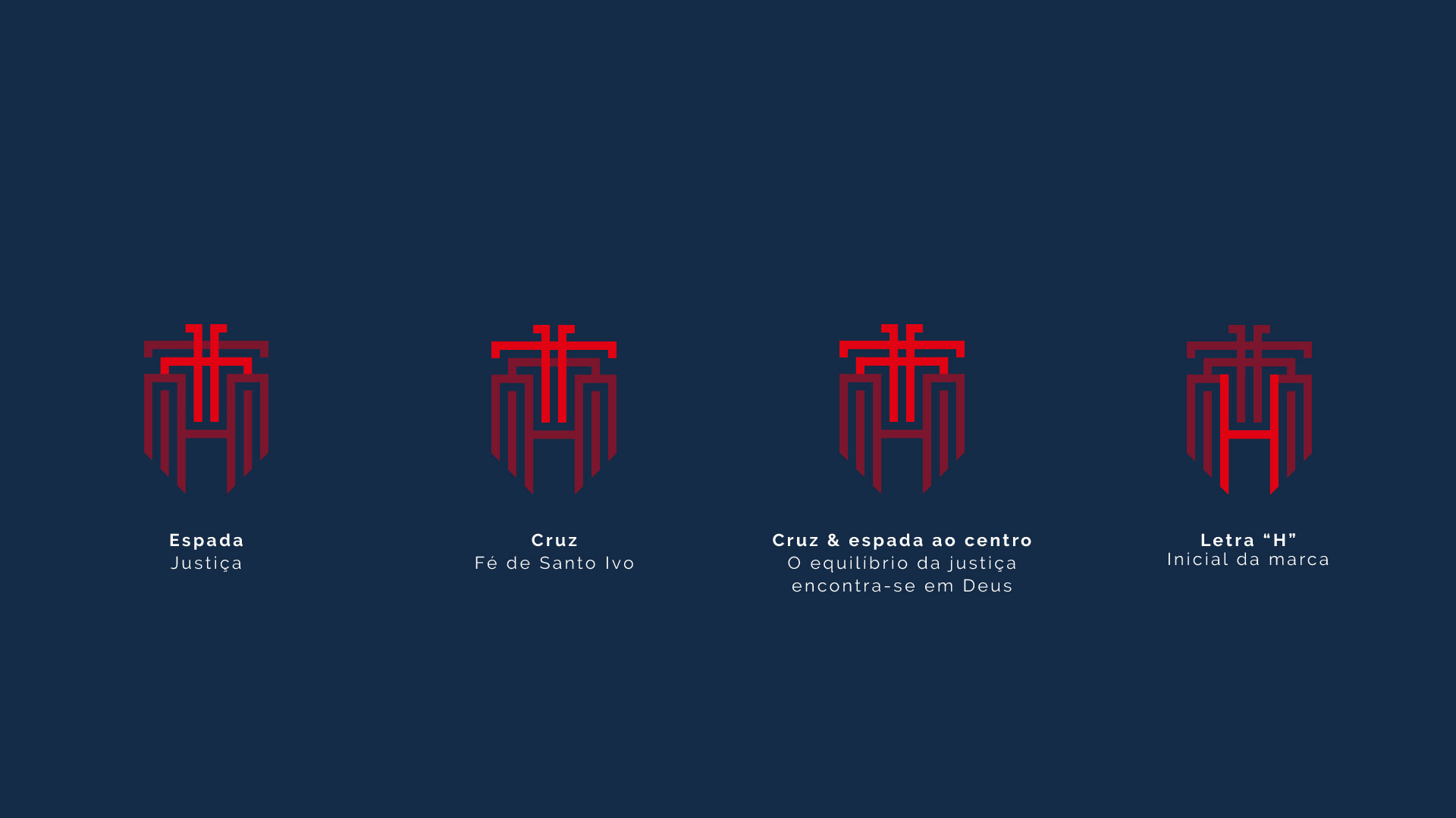 Para o desenvolvimento da marca Hélory, buscamos elementos que representassem a justiça, Deus e Santo Ivo.